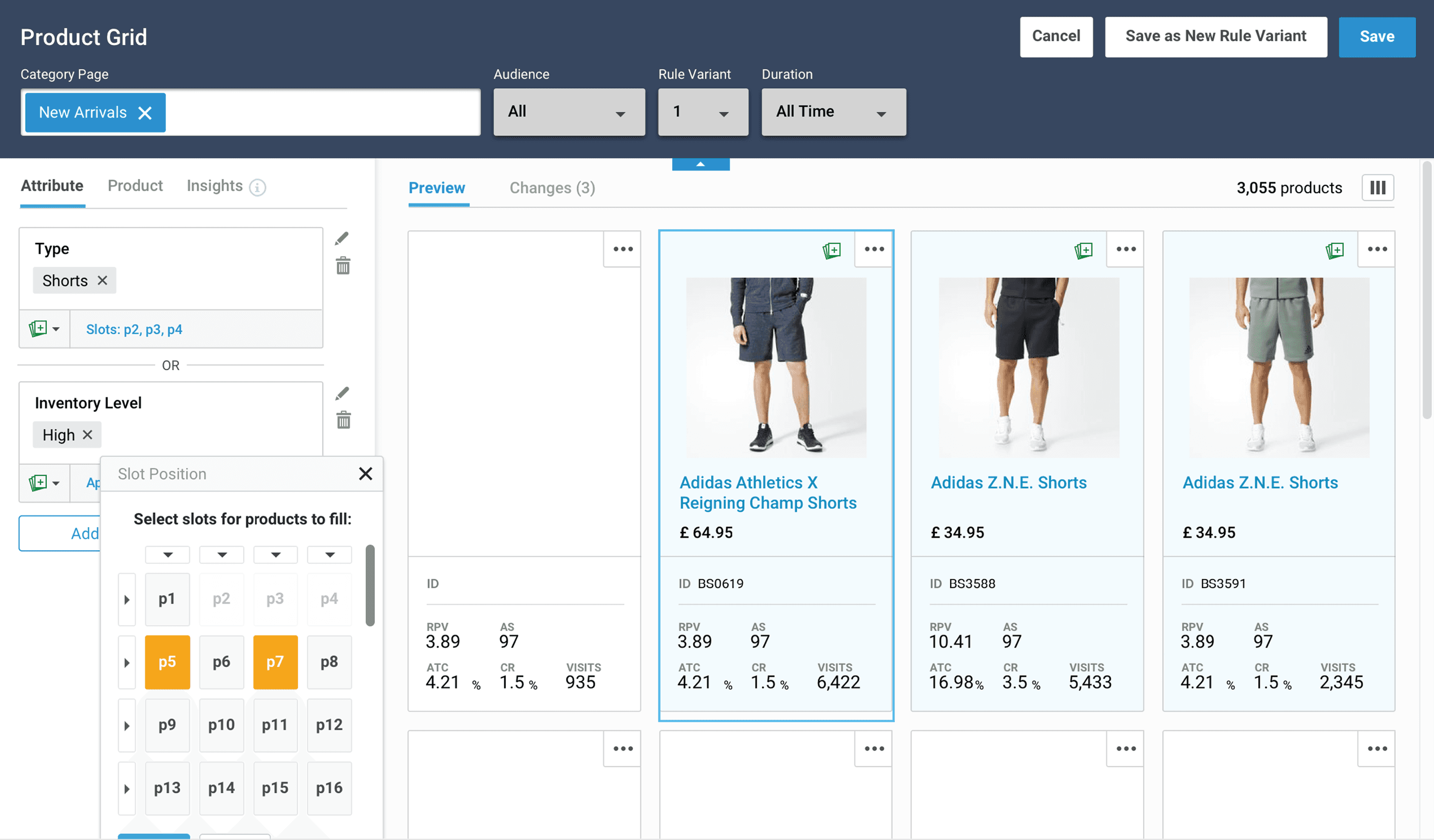 The Editor gives merchandisers real-time insight into how their rules shape the product grid.